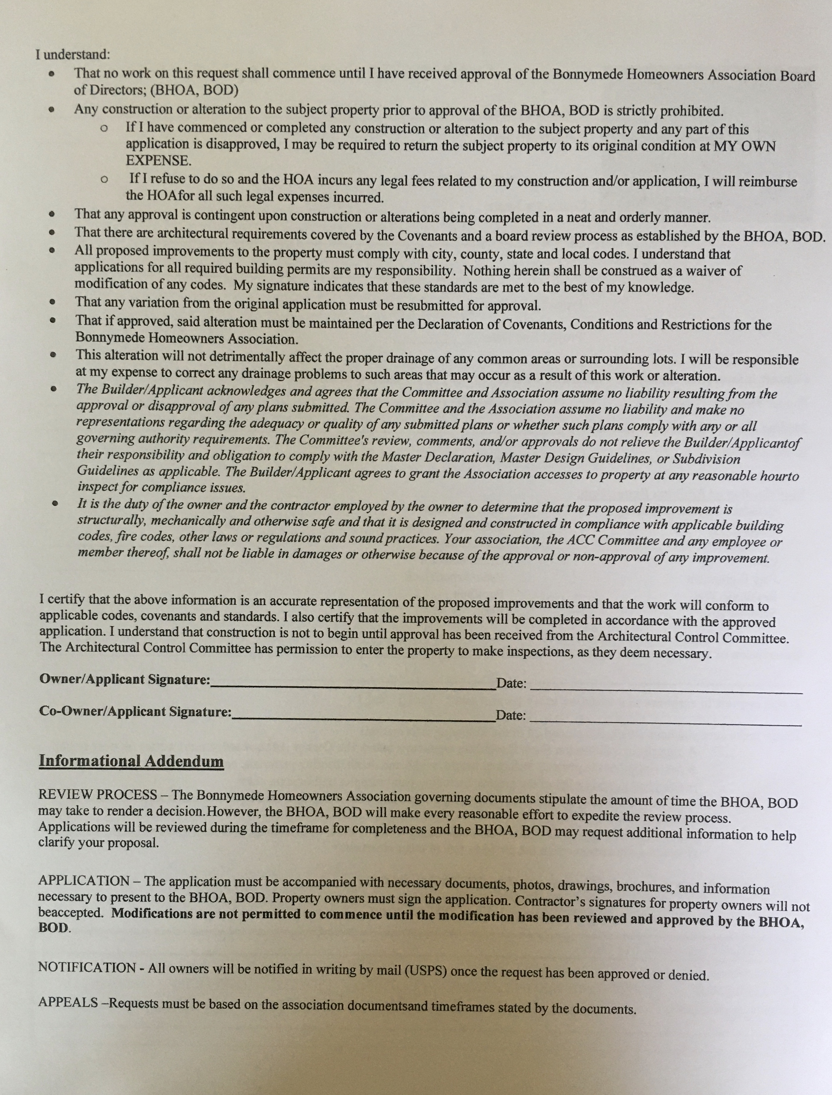 Architectural Improvement Form