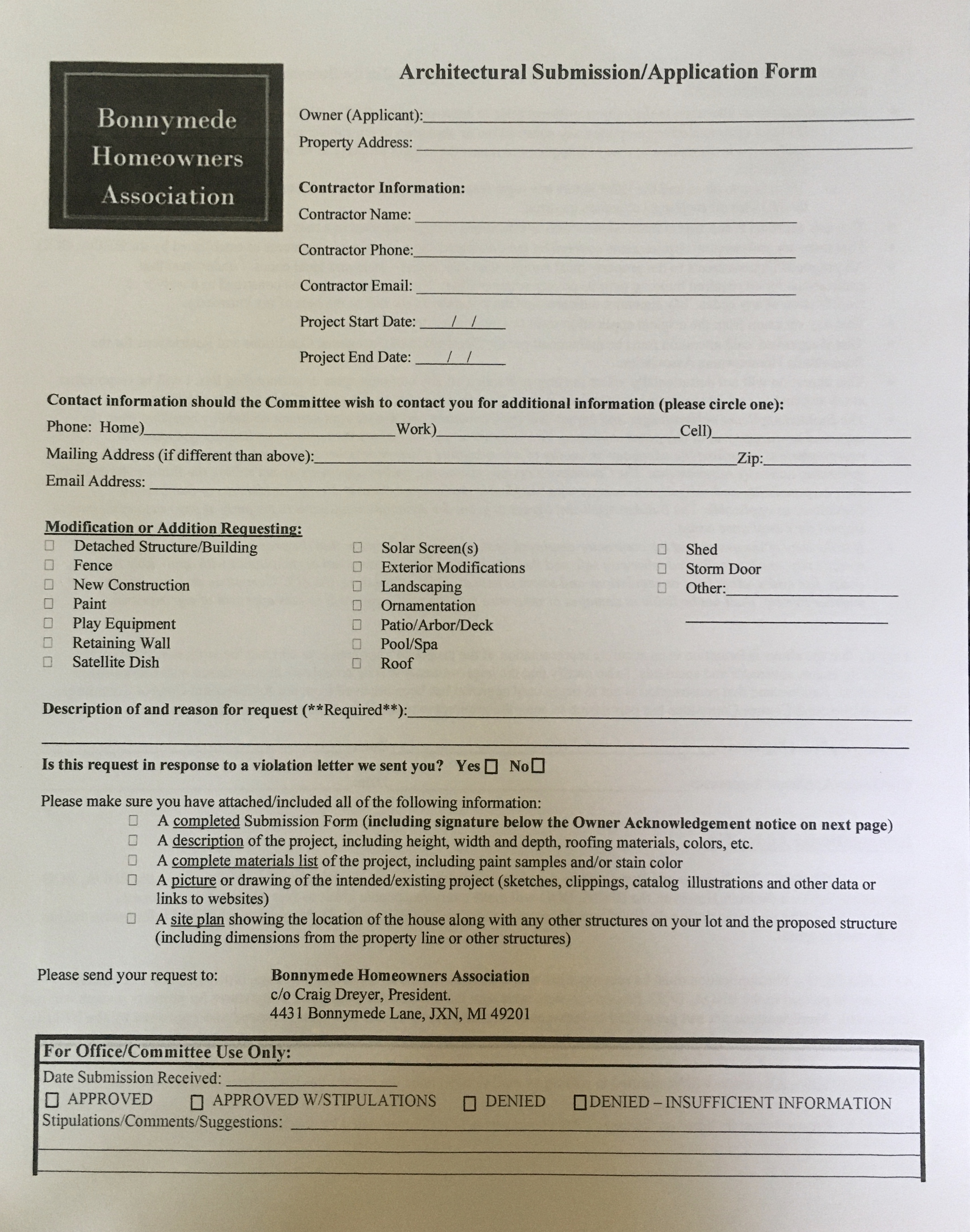 Make check payable to Bonnymede HOA.